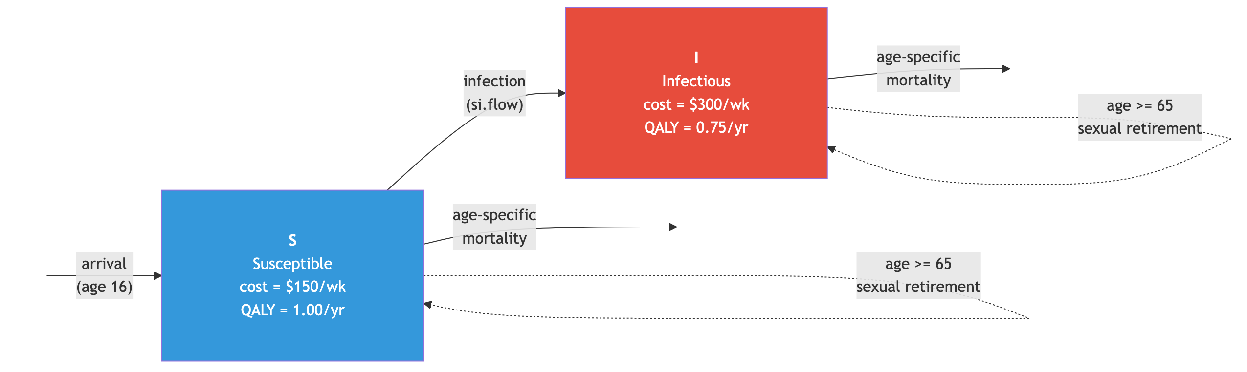 Conducts cost-effectiveness analysis comparing baseline SI with universal prophylaxis, tracking QALYs and costs with discounting and vital dynamics.