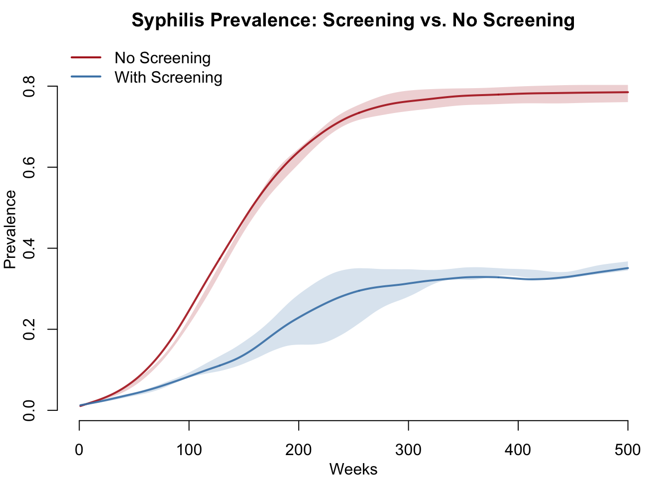 main = "Syphilis Prevalence: Screening vs. No Screening",